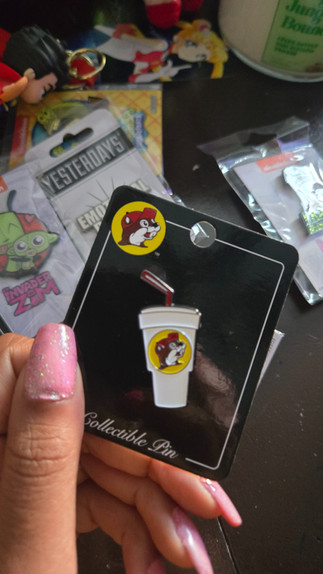 Enamel pins galore, including Invader Zim and Buc-ee’s because I’m nothing if not niche.